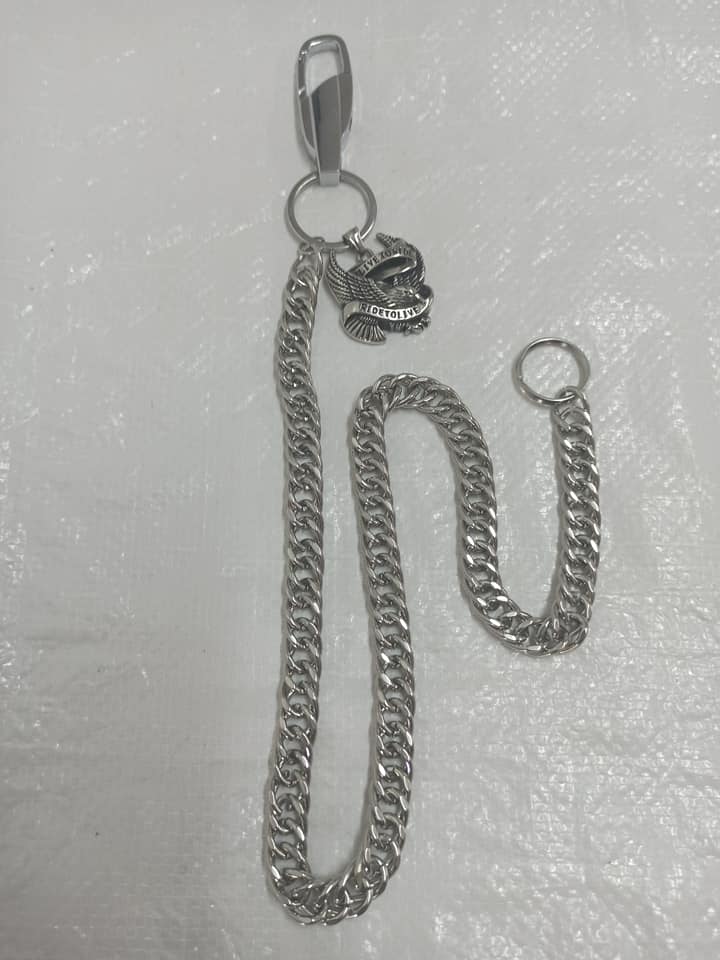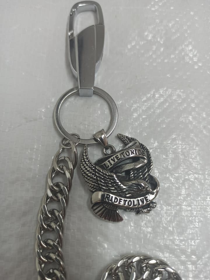 Cadena eslabón doble y colgante de inmejorable calidad. Material: acero 316L (acero quirurgico) Longitud: 70 cm. Diametro eslabón 12 mm. Mosquetón especial acero Peso: 160 gms.